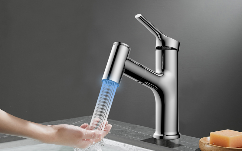 360°全方位抽拉清洗;微光龍頭,深夜使用不開大燈,不刺眼;日常洗頭利器,抽拉出水輕松洗;按壓切換兩功能水花;三種顏色LED燈光顯示水溫;重力錘復(fù)位設(shè)計,順暢伸縮,精準回位;無需工具,一推一擰10秒快裝