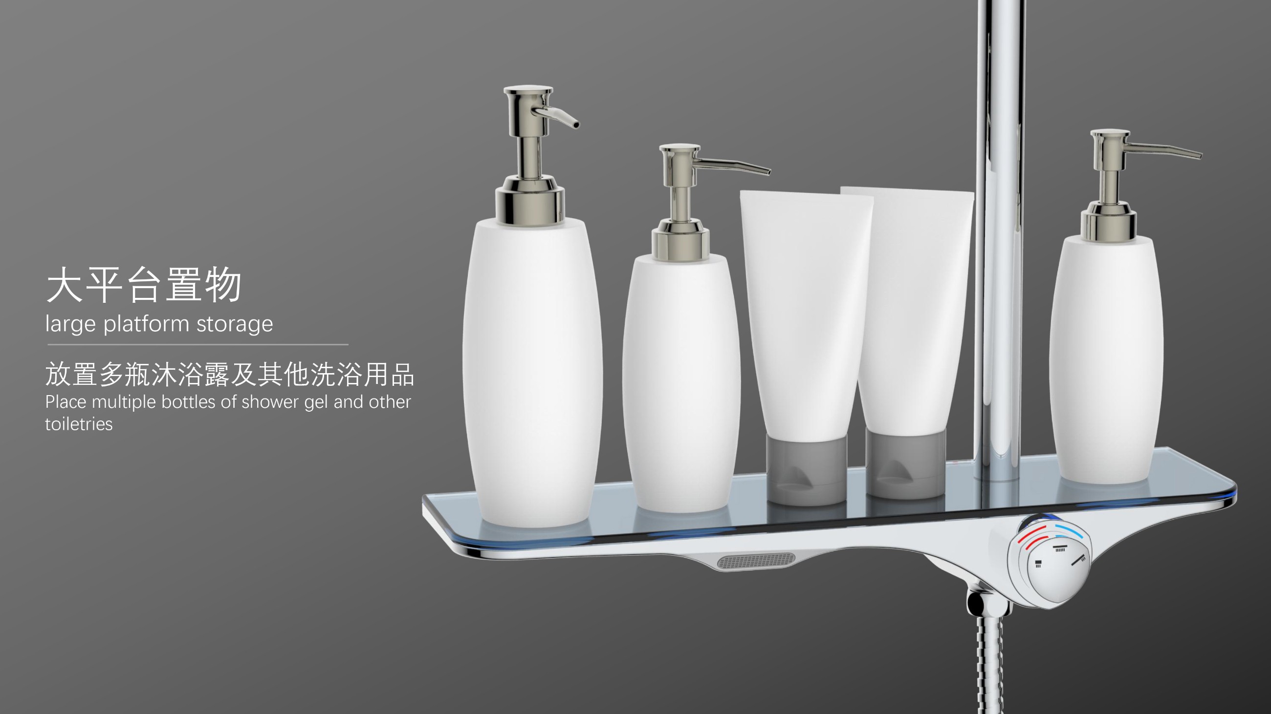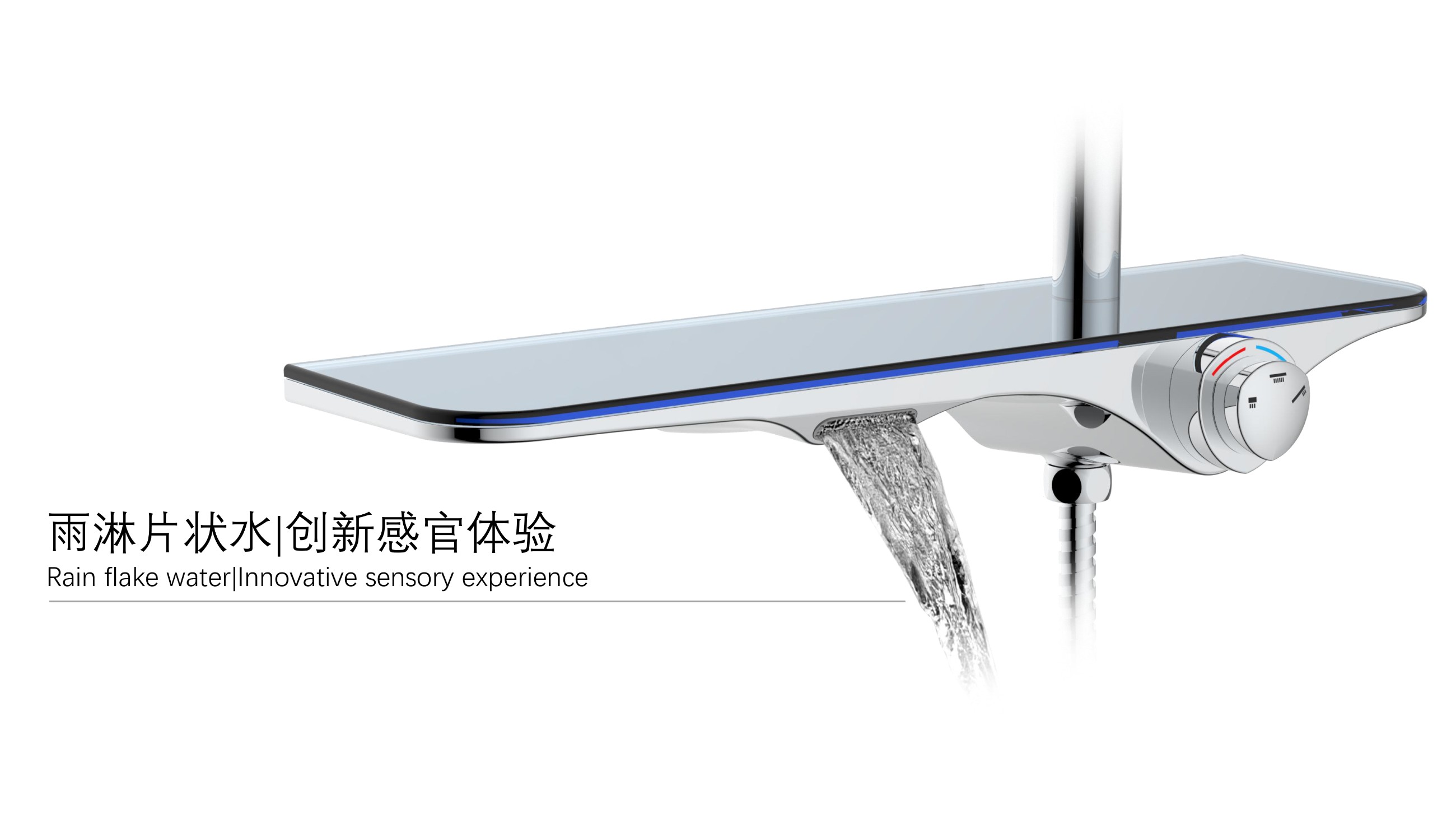 隱藏式下出水;仿山水大平臺(tái)置物;旋鈕切換三種模式出水